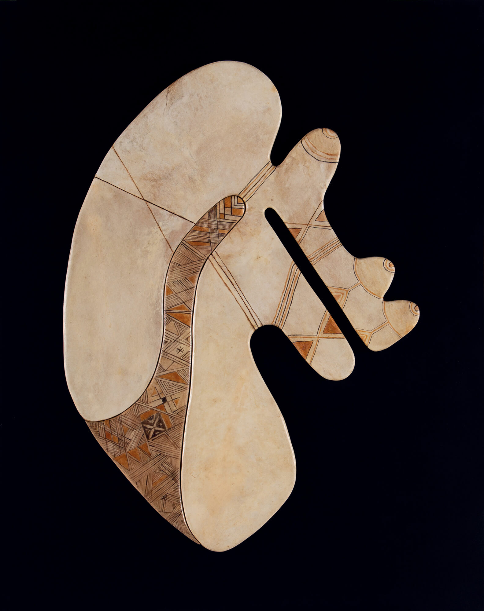 recherches utilisant des peaux animales comme support qui lui permettront de réaliser des oeuvres volumes.